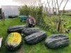 The three sound marrows are residing in the shed untill the end of the month. Although no WR this year I'm very happy with this season. I'll never know for sure as they were never weighed but I started off with 16 plants, lost one to mosaic virus early on, one was a runt at about 150 lbs and the other 14 were all in excess of 220 lbs. Next year I will have to cut down a little as I may not have so much time but the good news is my son Jack will be growing in the patches I won't be. To be continued......