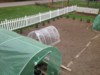 Here is a close up of how I am planning on feeding and watering. I also like the fence because it gives me something to attach row cover to now for shade and bugs.