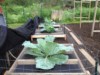 Here is patch view 2. The gray squares by the long gourd trellis is where our giant cabbage will go.