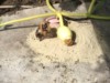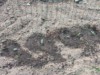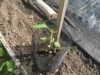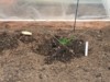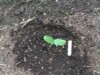 We dug in 4 hoops of soil heating cables. Here is one hole about 5 inches deep.