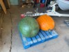 Field pumpkins up. Thats 3 days. Giant cantaloupe there too.