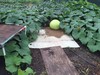 This is the 297 Kent Melon and it is going to be my keeper. It is hard to get melons set early enough here so I am keeping this one. My other three plants don't have a set yet. This is the 297 x 291 Kent.
