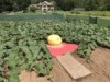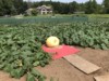 The kid has been waiting all year to sit on this pumpkin... she calls this one the giant and it is her favorite pumpkin in the patch... or was... good thing she sat on it... it might have blown away ...lol