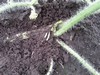 installed fertz feeder line to the 3 melon plants. On a timed/mg rate feeding meter and you can adjust the rate at the plants also. Plants are growing well. Had a storm roll through and roll a few vines, found out just how darn good the plants are throwing roots at the nodes. each node has roots, Excellent and just what I was hoping for so we pinned all the vine down with bbq skewers sticks. Added more night crawlers to the patch also. Amazing at night how many are on the bread we feed them, and yes lots and lots of fresh worm poo!