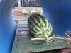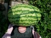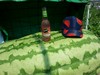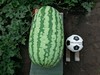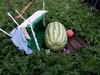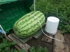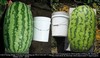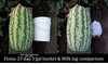 Fiona, 23 dap milk jug & 5 gal bucket comp. I've got pieces of boogie board foam under the bucket & jug to be the same level the melon is.