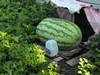 Nothing exploded last night after drenching!! Here's my best melon so far & it is on plant # 3. It put 5 lbs on since 7:30 pm yesterday. 112 ott, est a tiny 43 lbs.
