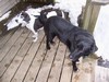 Tucker had just recovered from a broken hip after getting hit by a school bus, Lobo is the black dog I am guessing He ran away from home since He is deathly afraid of thunder, gunshots or anything else thats loud unfortunetlly He will kill anything He can catch, not other dogs but squirrels to fawns are on his list.He is one of the sweetiest dogs I have had and has the best manners, but He lets Tucker rule the roost