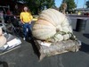 A picture of my wife standing next to Brexton Halls 1,626.50 pumpkin that would have been the Illinos state record , but was beaten 8 days earlier by Gene McMullens 1,692 , Brextons looked like a boulder.
