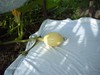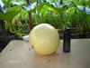 Rocky has a big shelter over her to shield from the sun and rain, but has a nice breezeway to keep it cool inside. She is on a smooth sheet of 1/4" plywood. Rocky is perfectly round with a greenish/yellowish color.