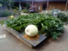 Looks like the 750 Oliver squash I'm growing in the learning garden at work has gone pumpkin. Didn't take long for that to happen. Haven't measured it but did manage to bend the stem putting it on the board yesterday. D'oh! Growing in just a 3x3m bed.