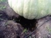 Cross section view of the base. You can see half the fruit was off the board and hanging over the hole. It was only supported by the two shoulders resting on the edges of the pit. The result is a crazy shaped squash.