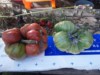 Bottom. I guess it was quite a bit catfaced. Oh well. Very solid feels heavy. The color ended up more pink than red. The others feel heavy too but let's see what this one weighs first. I already entered 3 or 4 early tomatoes. Maybe we are allowed 3... or 5? I'll have to check.