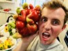 selfie with the cherry tomato. The planter it is growing in has TONS of wood ash in it.