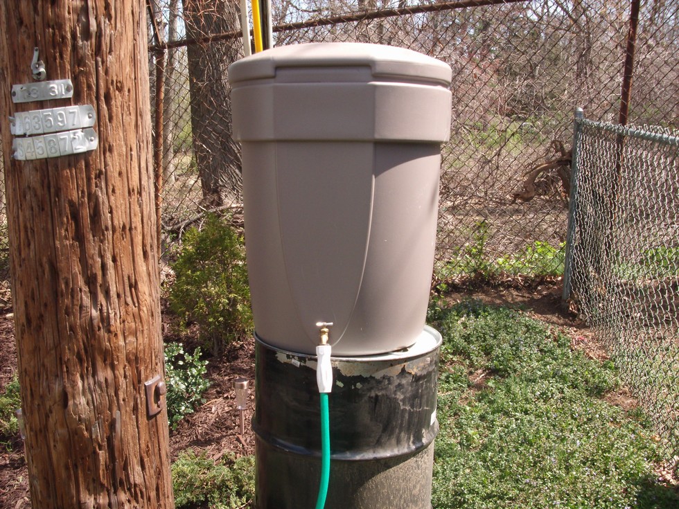Here's a photo of my new rain barrel I purchased last fall. I'm cutting a section of one of the down spouting on the back of the house and routing it to the rain barrel.