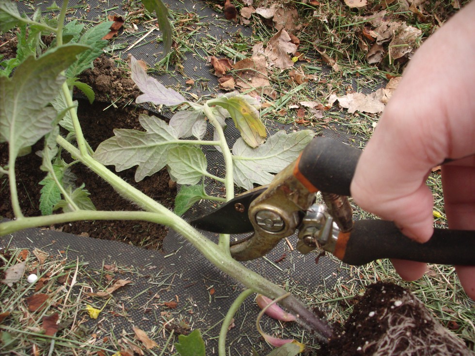 Here I am removing the lower branches from the plant.