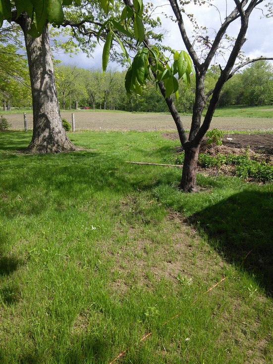 Its hard to see in the photo but last fall I tilled out a ditch that's about 80 feet long, it goes down two sides of the north plot to drain water away faster, I had standing water for 2 weeks in the corner of my north plot last year , its always been a wet area of the yard.