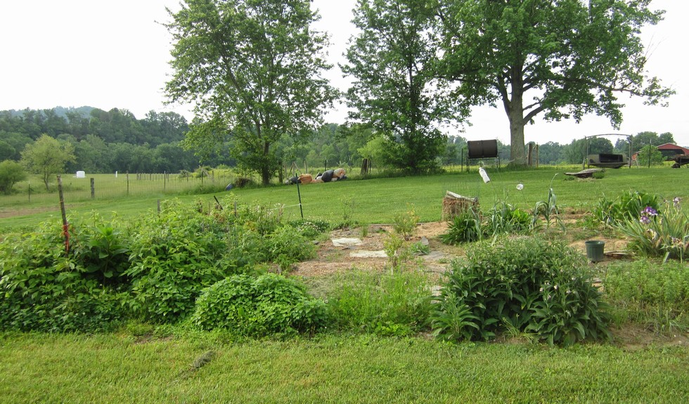 Raspberrys and herb garden.