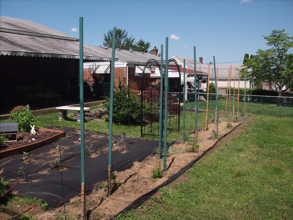 This morning I put in the permanent stakes in for the season. These are seven foot stakes that I hammer into the ground approx. 12 inches.