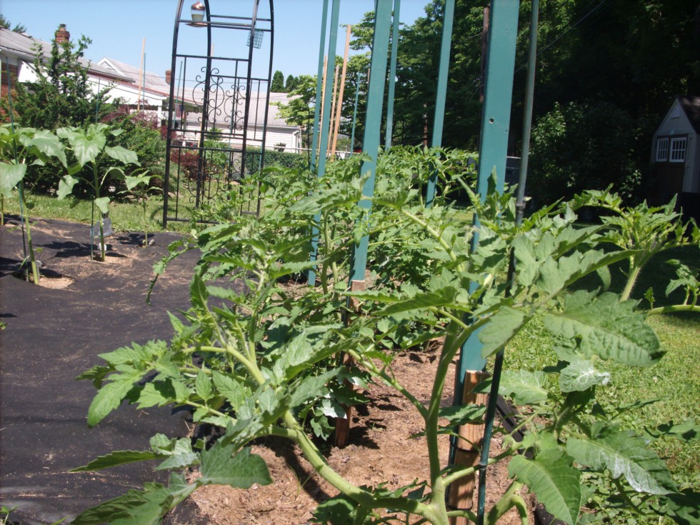 This morning I bottom fed compost tea to the plants. Everything is growing extremely well. The tomatoes that are set are slowly increasing in size. Heat is starting today with highs in the mid eighties with increasingly hotter temperatures through Wednesday where it's foretasted to top out at ninety.