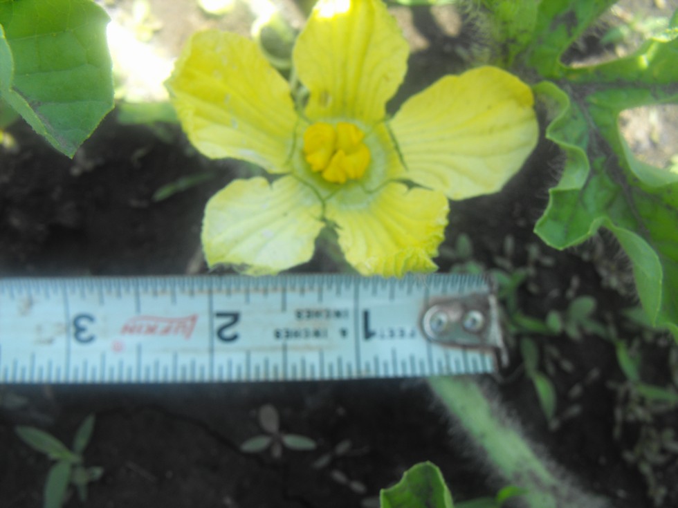 Pic of an average size bloom on this 260.5 grafted clementz plant I'm growing. Sorry for the blurry pics, dropped my camera again..These closed up again before I got to the to show the size so they have shrank some as you melon growers know they do later in the day and thats why you see cracks in the lower petals so really they are larger than this even a bit over 3" across. Will try and remember in the early mornin to get some better pics.