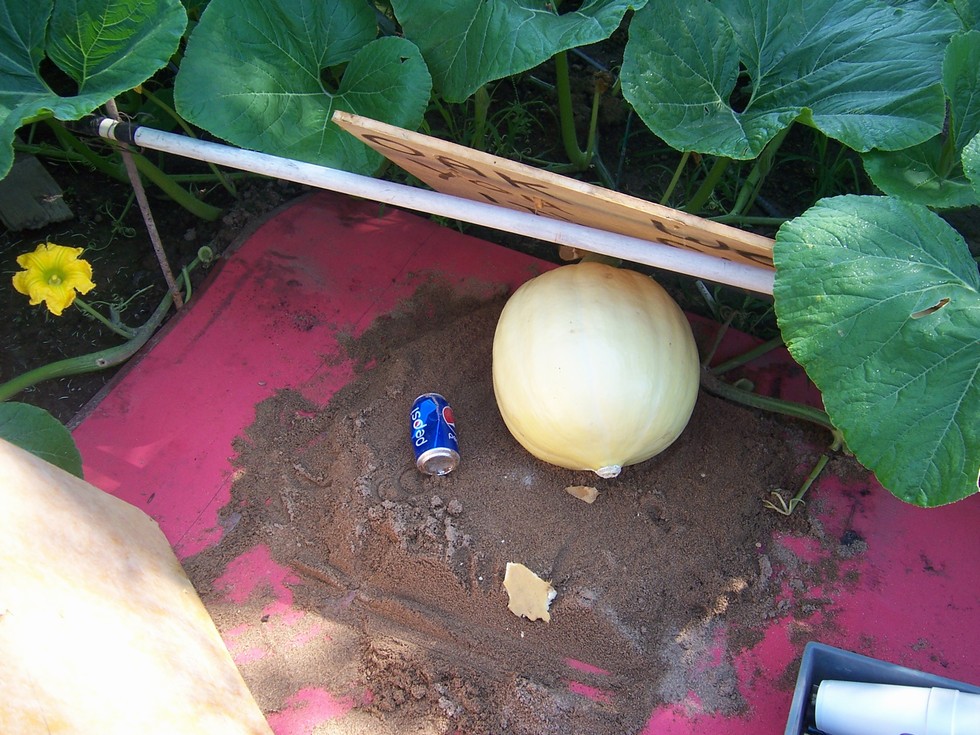 This plant still has a smaller pumpkin set on one of the first secondary's