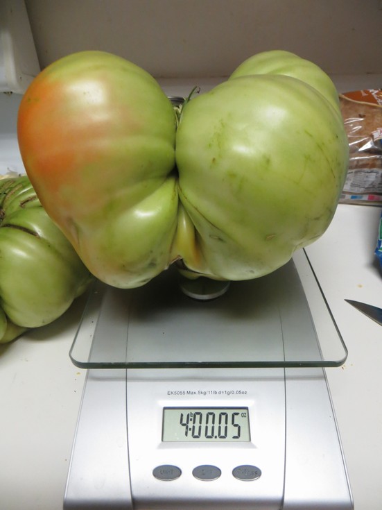 And this the biggest one. Of the 6.83 Boudyo. This plant had two tomatoes growing, with a combined weight of 7.10 lbs. To bad, it wasn't on one.