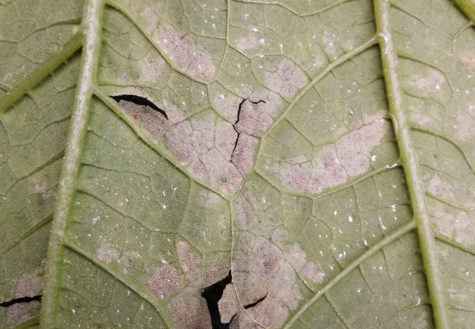 Here's the underside of the same leaf. Last year I had multiple episodes of pointless panic (downy mildew, bahaha), so I'm staying relatively calm this time. All I know is, this plant is twice the size of last years with far better genetics than the 176 producer, so although I'm just looking to crack 200lbs...which some new growers seem to do regularly with absolutely zero effort, haha...I'm truly hoping for 400+. Best of luck to all growers out there this season!