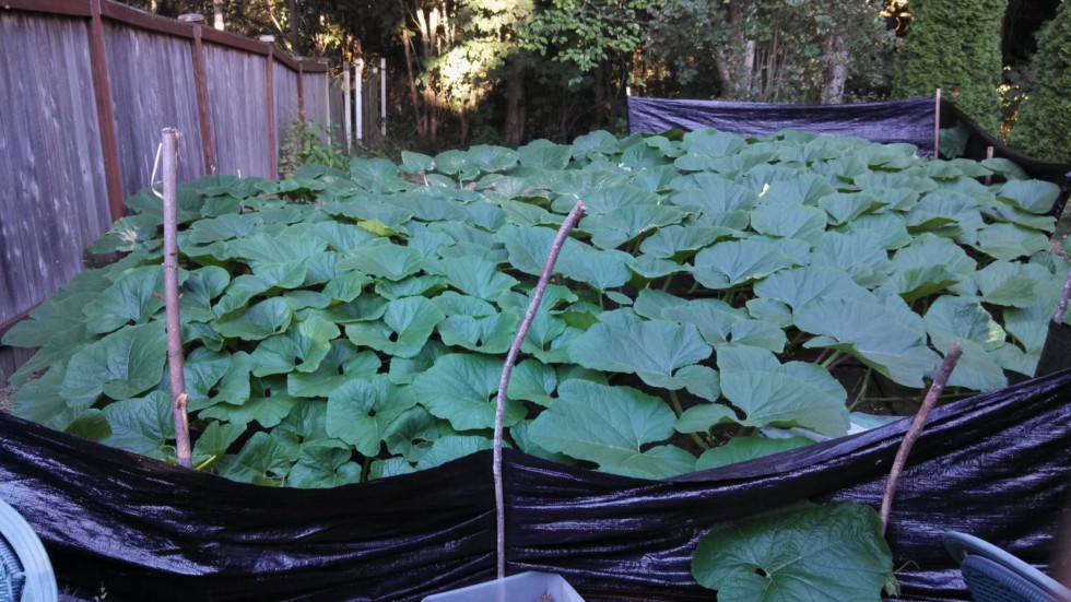 Not much to update other than the Gerhardt is at 11 DAP and 20" CC. Just want to get a number down early in the growth to see how the two secondary sets compare, if I let them grow to for ~11 days. Here the plant is, completely filled out, woohoo! By far, the most salad I've grown. I couldn't even fill this space with two plants last year, ha. No moles, no split vines, no dead growth tips, very little cat poopin' issues...a stress free season, for my expectations, anyway. Quite a bit of crowding on the front left, so I've terminated one of those secondaries further back to make room.