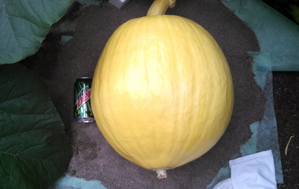 Just as it began, the Gerhardt at 20 DAP, awaiting a torrential downpour. It hasn't rained since it's pollination until early this morning, ha! Still quite behind...even behind last year's 176lb generic Dill, but it seems to be slowly picking up. 111 OTT, or 33lbs. Yikes, but it's the keeper, so nothing to do but ride it out. As it grows, I've noticed that the right side has gained quite a bit more mass than the left. Hard to see in the picture, though.