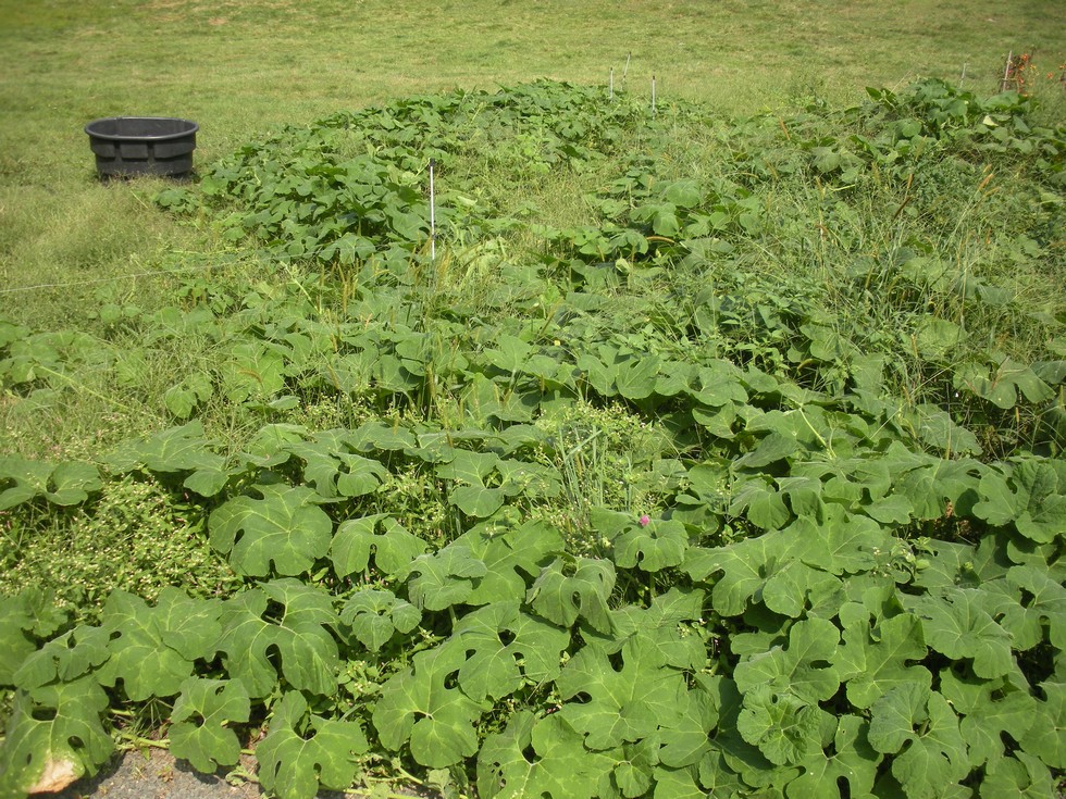 The plant that ate the yard. A single Cucurbita ficifolia seed produced this plant that has to be at least 50'x50'! It keeps growing. No diseases seem to bother it. Kind of like the bushel gourd but even more vigorous. I keep weed whacking it back in sections, but that doesn't slow it down one bit.