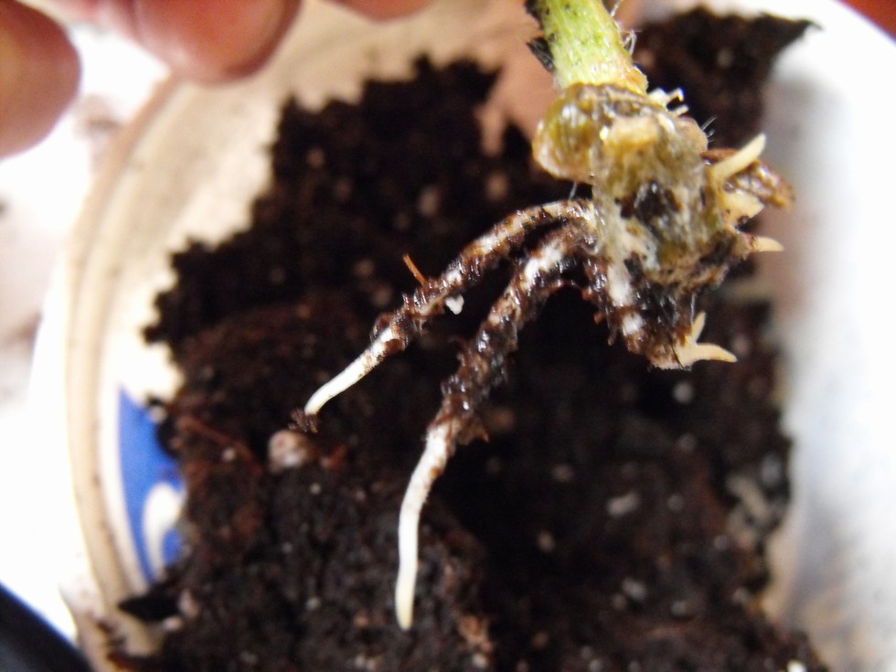Here is an example of the roots being thrown out on the 297 & 291 cuttings. Before repotting in moisture controlled potting soil, I cleaned off the rooting hormone slime that coagulates on the roots with a peroxide solution so there will be less chance of disease. They have also been inoculated with Extreame systemic fungicide at this time. I will inspect the roots on them in a weaks time , repot for the last time and some will be mailed out to a fellow grower who is wanting the 297 plant that is growing "Pig". Both the 291 and 297 melons are growing well still and with the 6.5 inches of rain we had overnight a couple days ago they both have put the pounds on incredibly with no "Side Affects", but there is cold ,cold weather coming, fingers crossed.