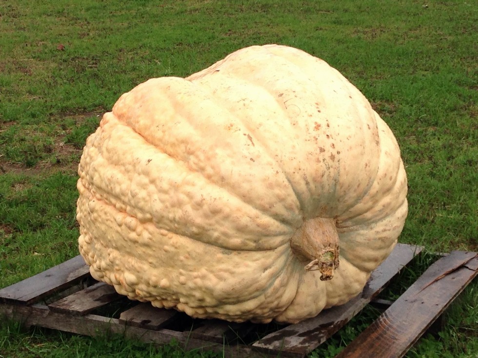 1623. What looked promising early on has turned into a learning experience. It stopped growing early in August and from what I've been told probably had mosaic virus. It got very warty, growth slowed and the leaves were a little discolored. On the upside I had a fruit that I could take to the Shawville Fair. 552lbs was the final weight.