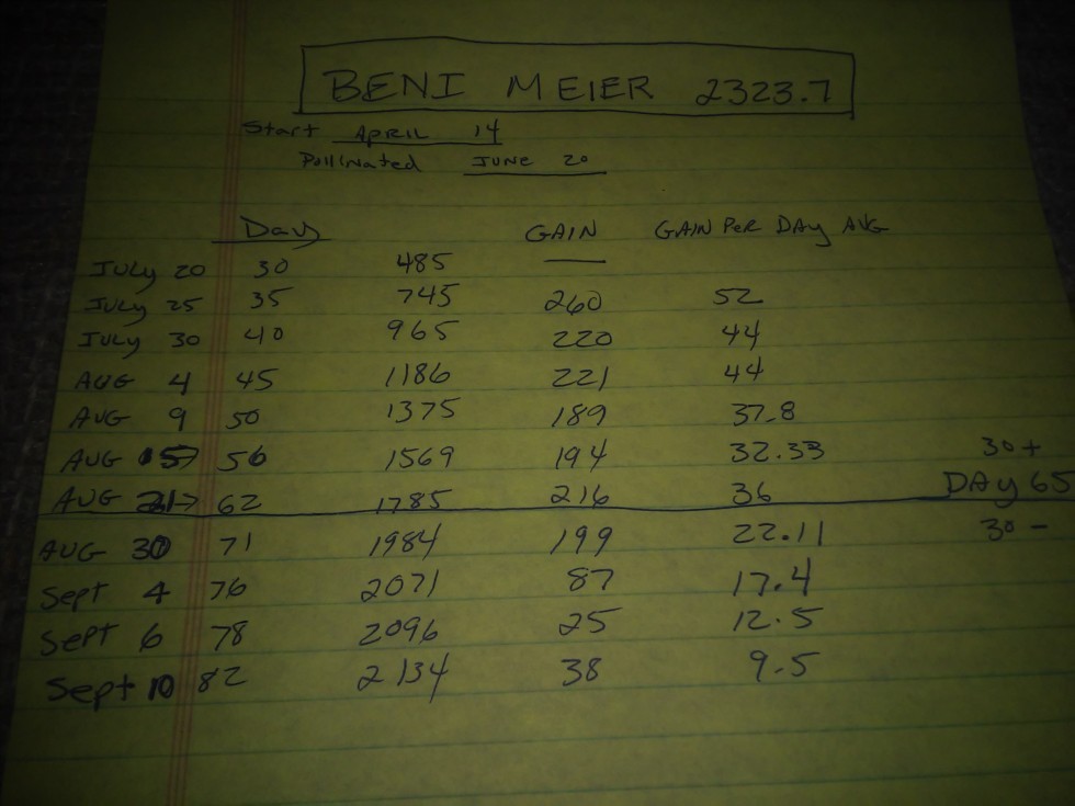 Here is the weight gains chart again. It looks to me that beni kept solid 30 lbs a day till day 65 and then it began to slow down quickly after that