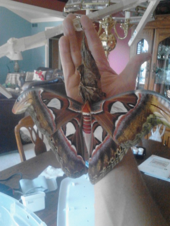 I may have a trophy for the largest moth !!! It has a wing span of 12.5" glad this isn't a vine bore moth, it could do some real damage.