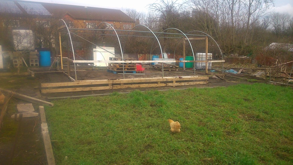 When the batteries are flat I get to start other jobs such as putting in a boundary on the patch. It's raised a little to keep all the leafs from dropping over onto the path. The edging is simply pallet strips, recycled like everything else on this project