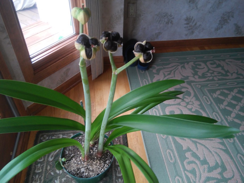My amarylls seeds pods are opening up now !