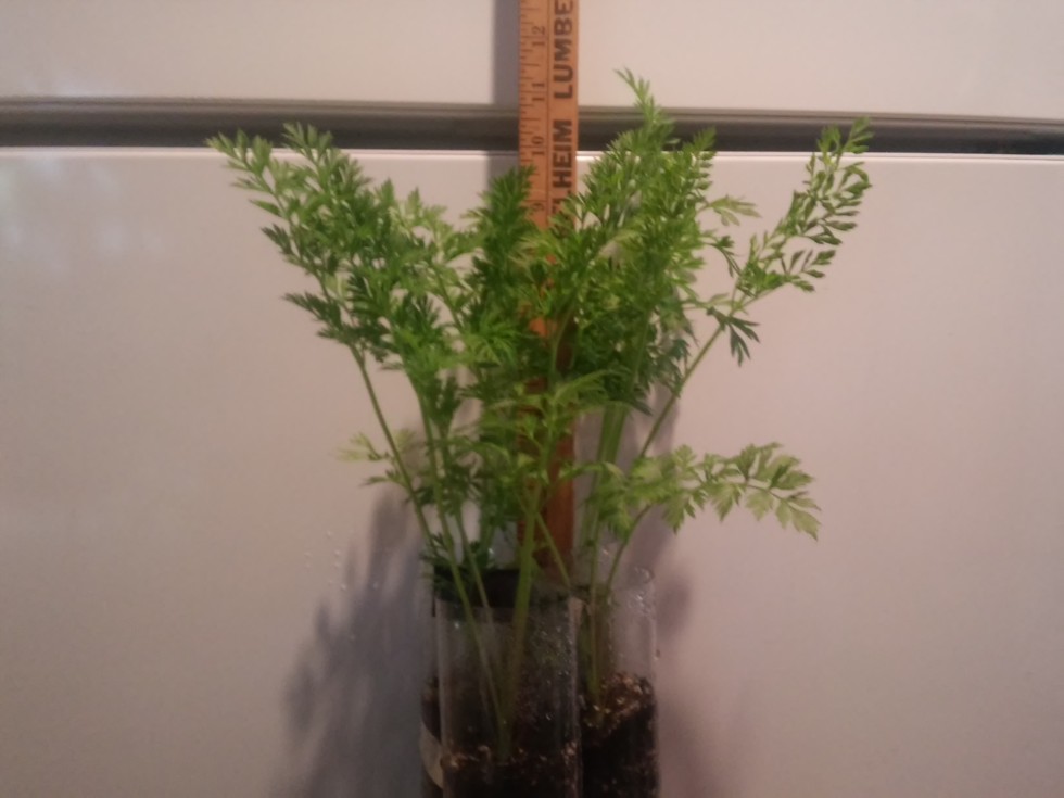 Gaint carrots are doing fine. Their about 10" now and im starting to see little carrots now about half the thickness on a pencil