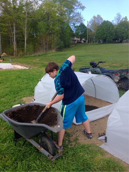 Gage getting the houses ready for the plants.