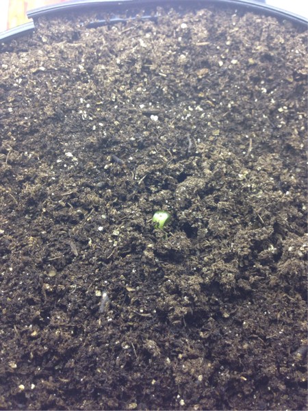 The last 2 seeds started breaking dirt today. 100% germinated. Here is Gage's 2096 Meier peeking thru the dirt.