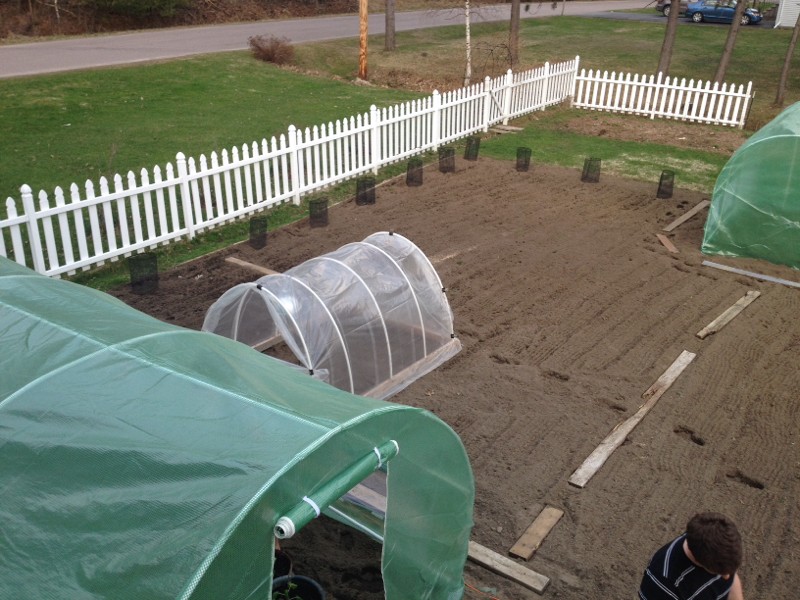 Here is the other half of new patch which will be about 620 square foot pumpkin and melon hut. The small black hoops that are outlining the patch will be rabbit protectors for our giant sun flowers.