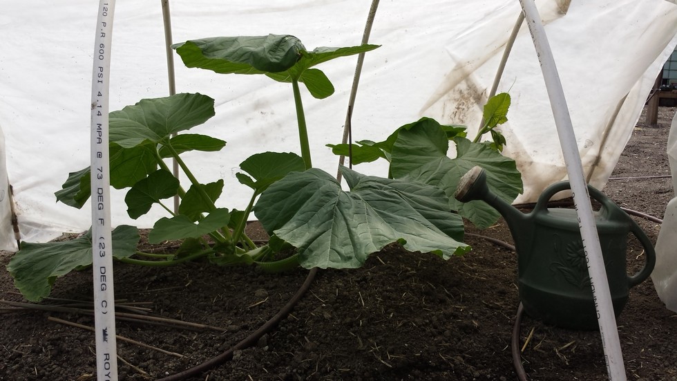 We are way ahead of last year but way too early to theorize the outcome. This is a Dixon 1124. The most aggressive plant I've ever grown. This main vine is 4 ft long would appear to be very healthy. On another plant, the Carly 1177, the aphids were already attacking. This seems to be very early for aphids but demonstrates the need to be checking the undersides of leaves constantly. They were on only 1 leaf so I decided that the squish method of extermination was the way to go.