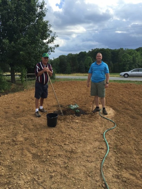 This is my friend, C L Hyatt. He recently lost his wife to Alzheimer's. I gave him a pumpkin plant this year. If the fascination of growing these giants takes hold, it can be good therapy. C L is starting to really take an interest in growing his plant. i think he'll be hooked if we can keep it healthy and a pumpkin sets and starts putting on about 25 lbs. a day. The plant is a 1077 LaRiviere (1080 LaRiviere x 1676 Daletas). Thanks for the seed, Gene. Your generosity may help heal a broken heart thousands of miles away. We'll see how the season goes.