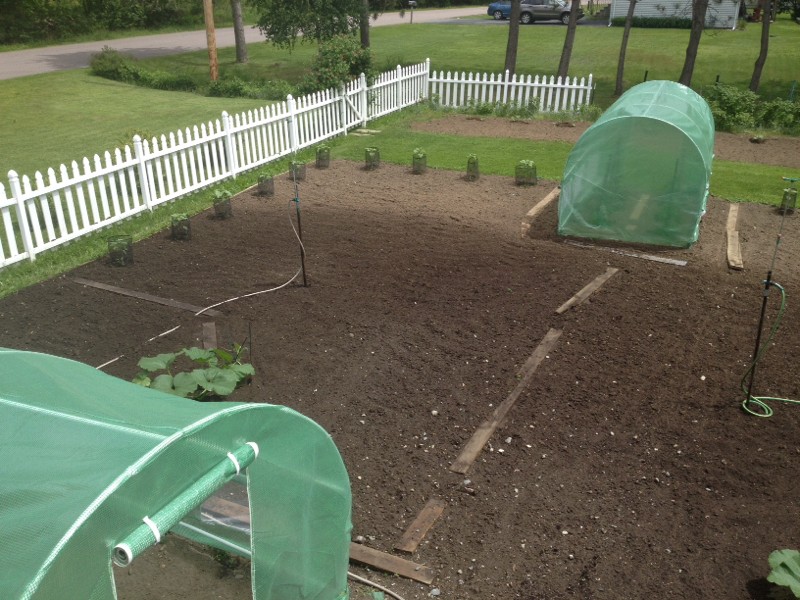 The watering only goes out 22 feet but I have hose and sprinklers to cover the last 15 feet. Patch view 3.