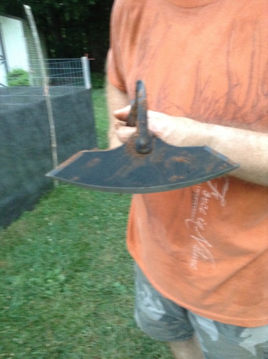 I think we who keep diaries on BP hope they are inspirational at times, entertaining at times and at times helpful. With that in mind, I found this hoe at a local lawn & garden store that has quickly become my favorite garden tool. I have nicknamed it the bat hoe for obvious reasons. It is about 2 inches wider than a normal hoe, so it covers more ground on each push & pull. You can weed with precision right up next to your garden plants, but it will flat cut off a good plant in a hurry if you're not careful. You can turn it on edge and it will dig deep into the soil.