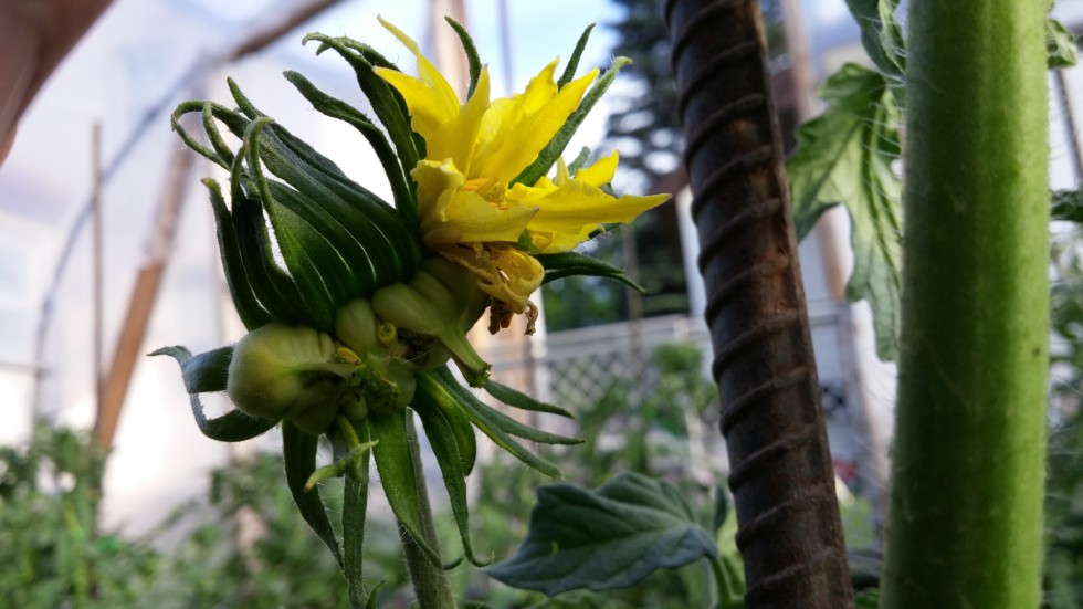Another huge bloom off my 4.57 MacCoy. The 8.41 bloom did this same thing and took about a week to pollinate. 7 out of 11 plants are topped off with tomatoes growing on the first trusses.