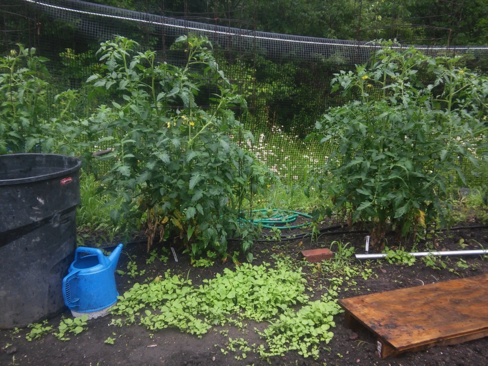 Eating tomatoes are about 4-5' tall allready