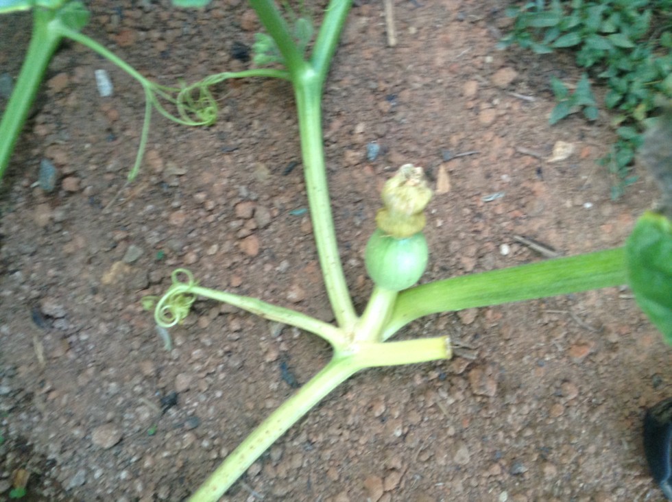 A classic symptom of mosaic virus is the fruit starts out green. This is the 1719. When the vine was healthy, the fruit that came on were yellow. I haven't taken it out because I have an ag agent coming in the morning to take samples to send to NC State University to confirm what has attacked my plants.