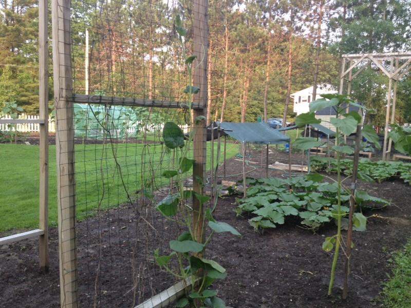 126 May is growing well and about half way up the trellis.