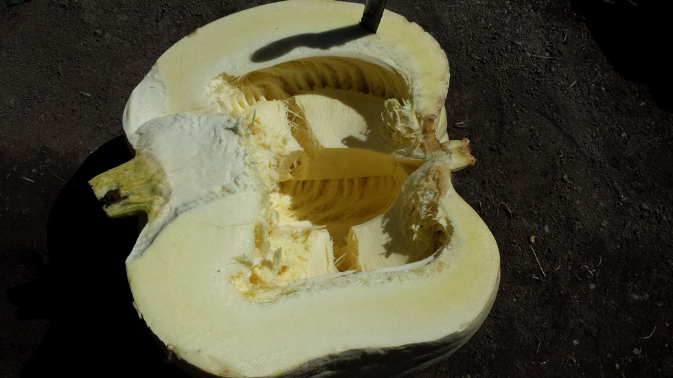 Weird growth...eh? Blossom end 1/4 " thick. Stem end about 6". Anyone out there know why, please email me Thanks.
