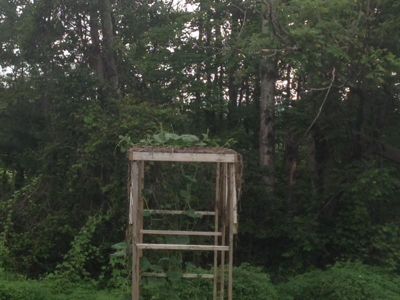 Both long gourds are up on top of the 14.5 foot trellis. The 126 May is about 18.5 feet and the 129 Young is around 17 feet.
